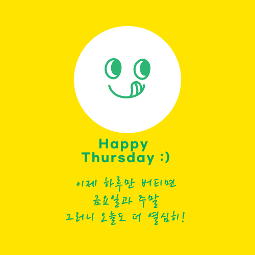 6. 행복한 목요일! 웃음 가득한 하루 보내시길 바랄게요!! :)