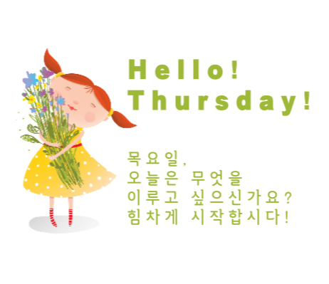 4. Hello! Thursday! 목요일, 오늘은 무엇을 이루고 싶으신가요? 힘차게 시작합시다!