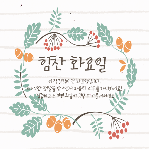 ⬇️화요일 인사말 PDF 이미지 파일이 필요하신 분은 아래의 파일을 선택해 주세요⬇️
