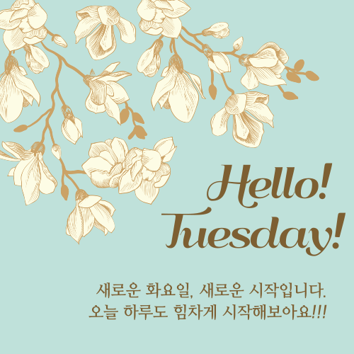 화요일을 떠올리면 어떠신가요? 월요일의 피로도 남아있고, 주말까지는 까마득해 보이고 유독 화요일은 일도 많은 것 같습니다. 그래서 더욱 서로를 향한 응원의 한마디가 필요한 화요일 아침, 기분 좋은 인사말 한마디로 시작하는 건 어떨까요? 화요일 아침에 내 주변 소중한 사람들에게 마음을 전할 인사말과 이미지를 공유합니다. 활기찬 화요일을 보낼 수 있도록 인사말 메시지를 보내며 마음을 나누어 보아요~^^