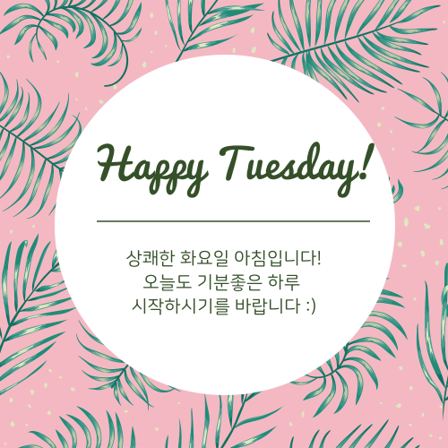 7. Happy Tuesday! 상쾌한 화요일 아침입니다. 오늘도 기분좋은 하루 시작하시기를 바랍니다.:)