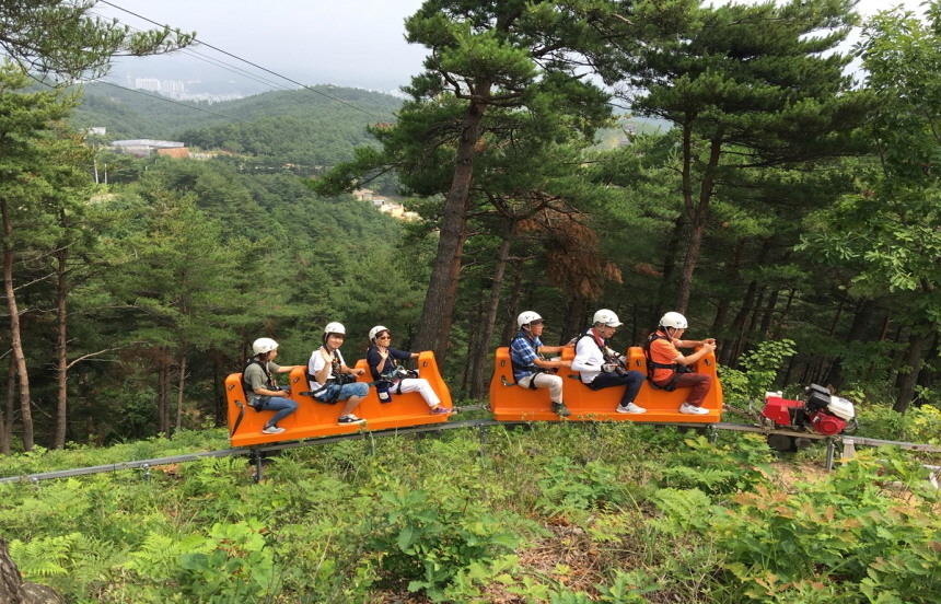 송이계곡 자연휴양림 내에 위치한 이곳은 모험을 즐기는 사람들을 위한 다양한 레저스포츠를 제공합니다. 슈퍼맨처럼 엎드린 채 580m 높이까지 날아오르는 스카이플라이 짚라인의 스릴을 경험할 수 있습니다. 또한, '숲 속열차' 모노레일을 타고 숲 속 경치를 감상할 수 있습니다. 하늘을 날고, 짚라인을 타고, 숲 속 열차를 타고 여행하는 등의 활동은 스트레스를 해소하고 자연에 푹 빠질 수 있는 훌륭한 방법입니다.
