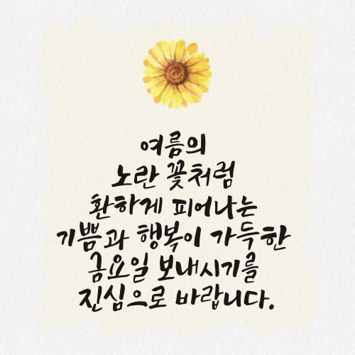 4. 여름의 노란 꽃처럼 환하게 피어나는 기쁨과 행복이 가득한 금요일 보내시기를 진심으로 바랍니다!! :)