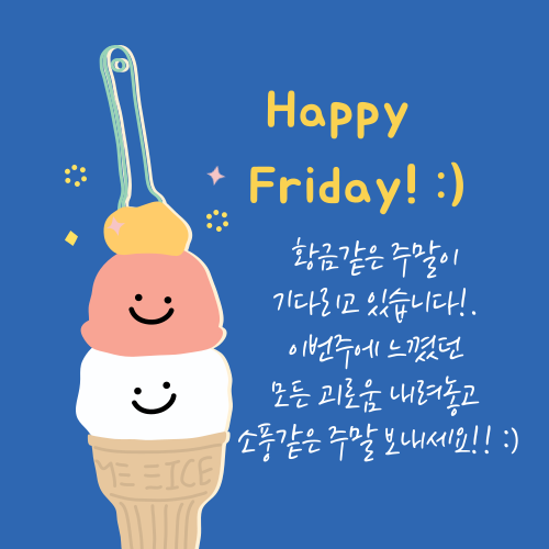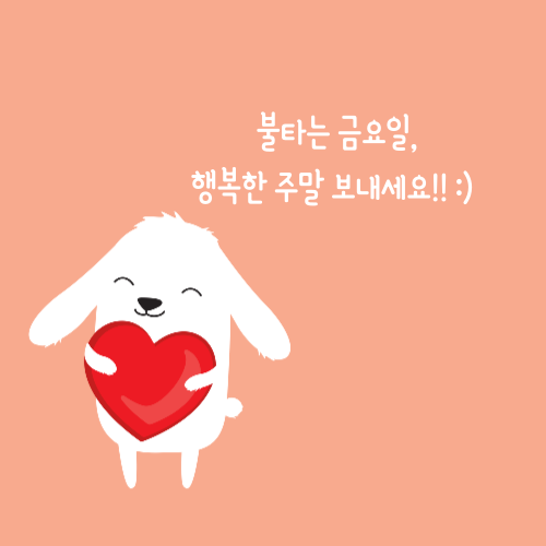 1. Happy Friday! :) 이번주 평일의 마지막인 금요일입니다! 이번주도 열심히 달려오신 당신에게 박수를 보냅니다! 주말을 앞두고 힘차게 마무리 하세요!!