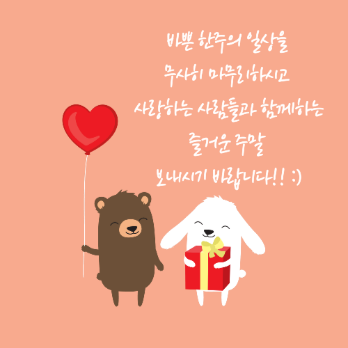 3. 금요일! 드디어 금요일입니다. 몸과 마음이 잠시 쉬어가는 주말 보내세요!! :)