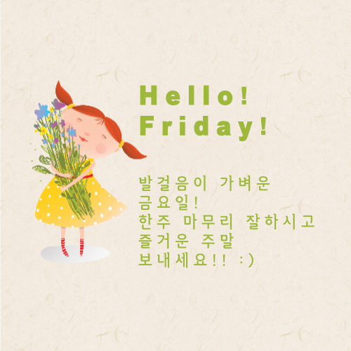 6. Hello! Friday! 발걸음이 가벼운 금요일! 한주 마무리 잘 하시고 즐거운 주말 보내세요!! :)